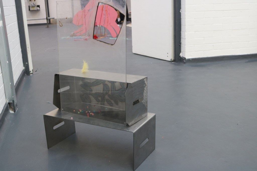 Etching on Sanwa paper, steel, plastic, artificial feather,